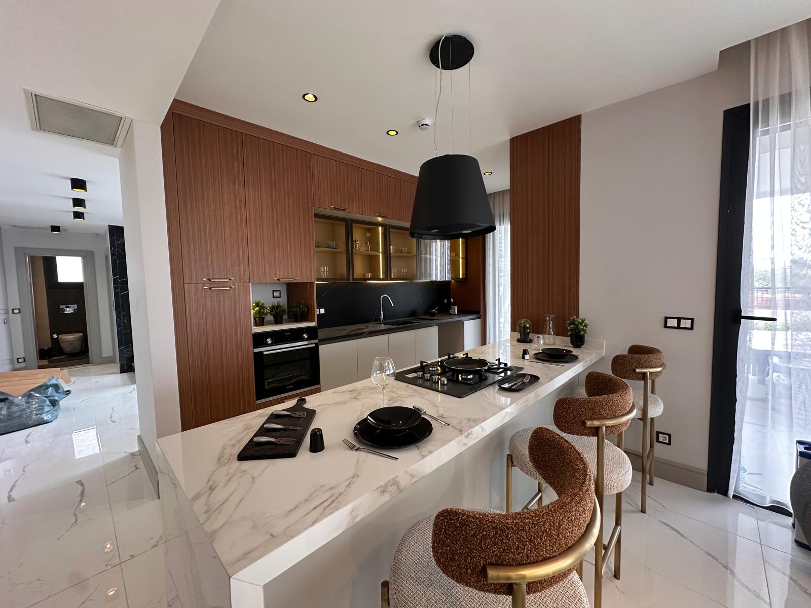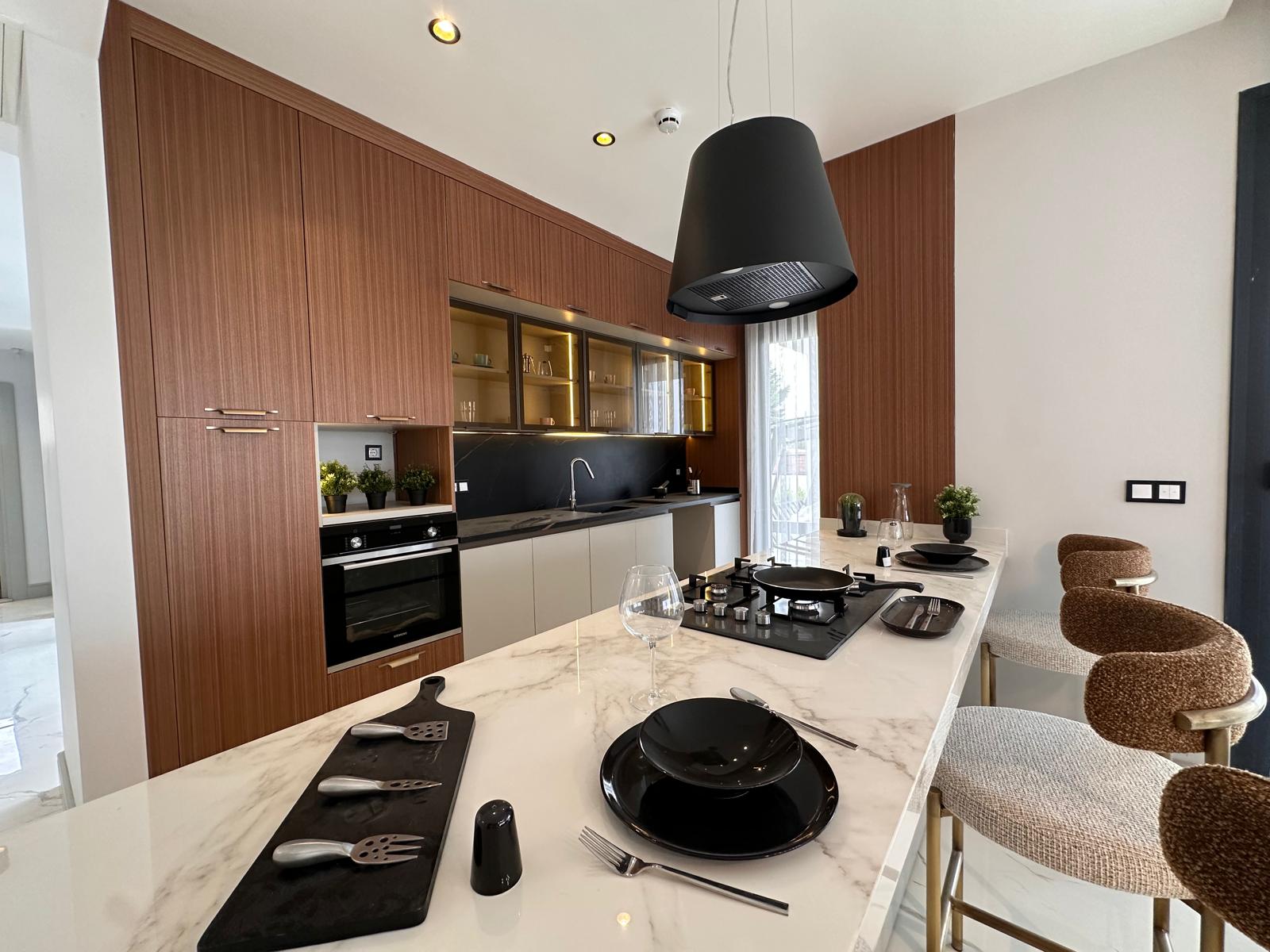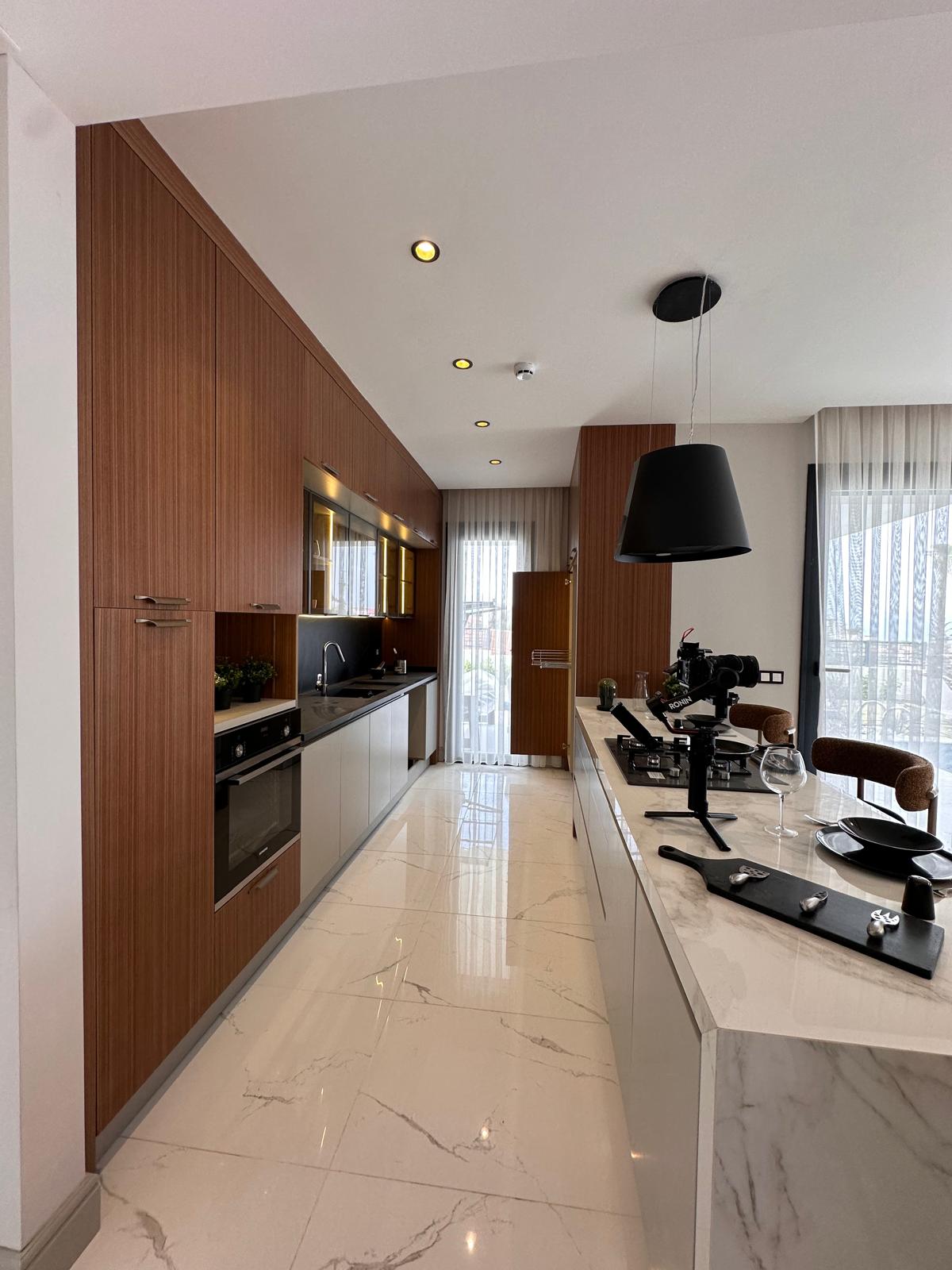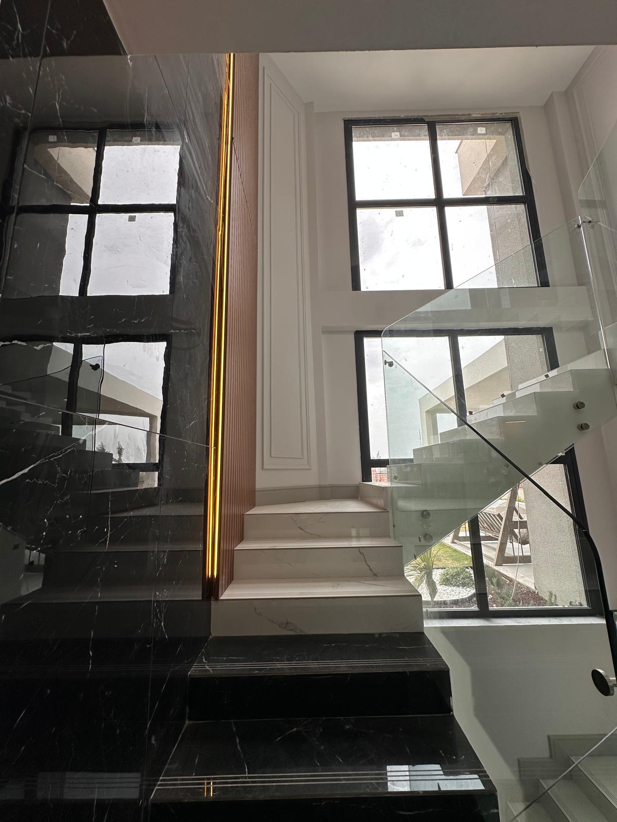 Mermer Merdivenler, Odalar-Salon Laminat Parke veya Seramik, Modüler Sistem Mutfak Texgahı, Mutfak Ankastre Inox, Ocak, Fırın, Davlumbaz,