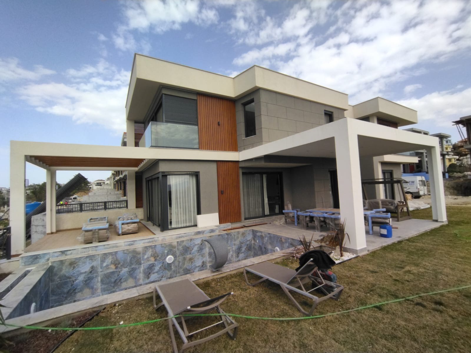 İç Mekanlarda Su Bazlı Saten Boya, Elektrik Tesisatı, Prizler, Merkezi Klima Alt Yapısı, Villa Girişleri Çelik Dış Kapı…